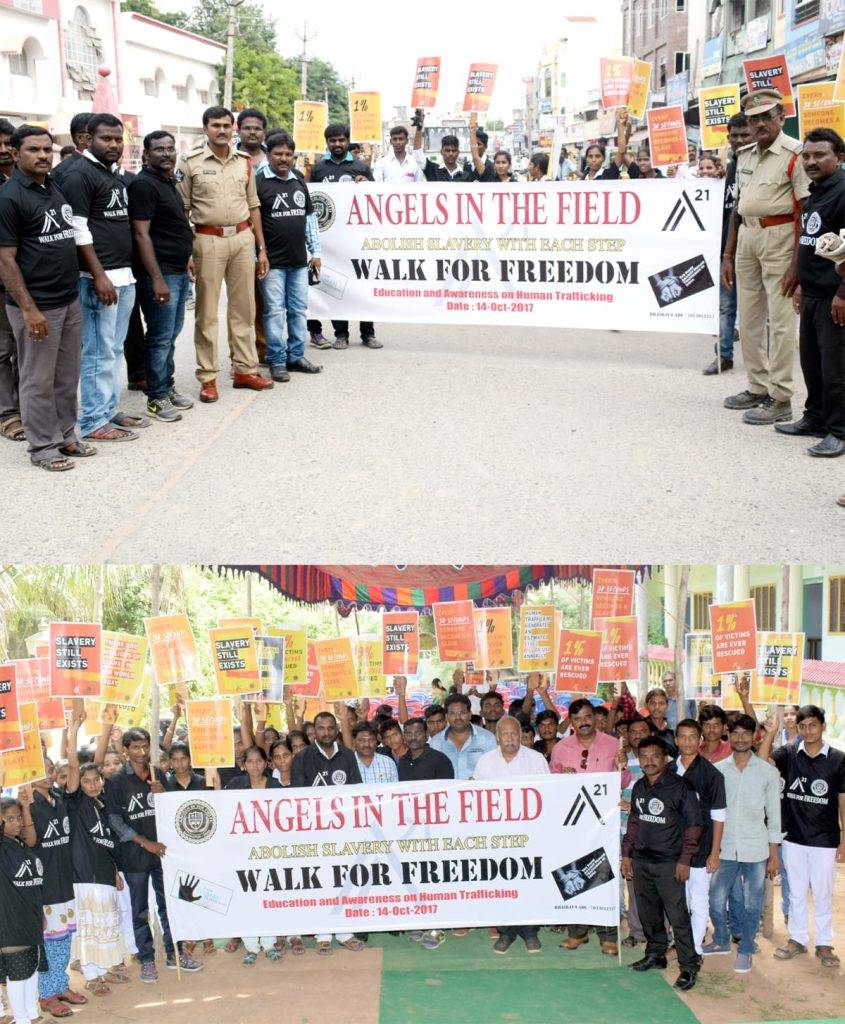We conducted Walk for Freedom (Education and Awareness on Human Trafficking / Modern Slavery). This program Inaugurated by Sub Inspector of Police, More than 200 Youth participated in this walk. This walk covered Markapur main places, for this Walk most of the people educated and aware of what is Human Trafficking and slavery. All most all Government Departments involved in this Walk.